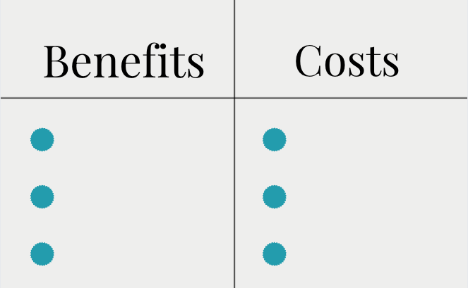 Benefits on the left. Costs on the right.